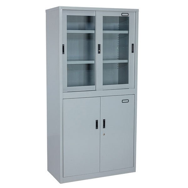 Office Almirah with Sliding Door – Thickness 0.8mm in MS CRCA (Powder Coated) adjustable shelves with click to shut locking device and manual locking at front Gate